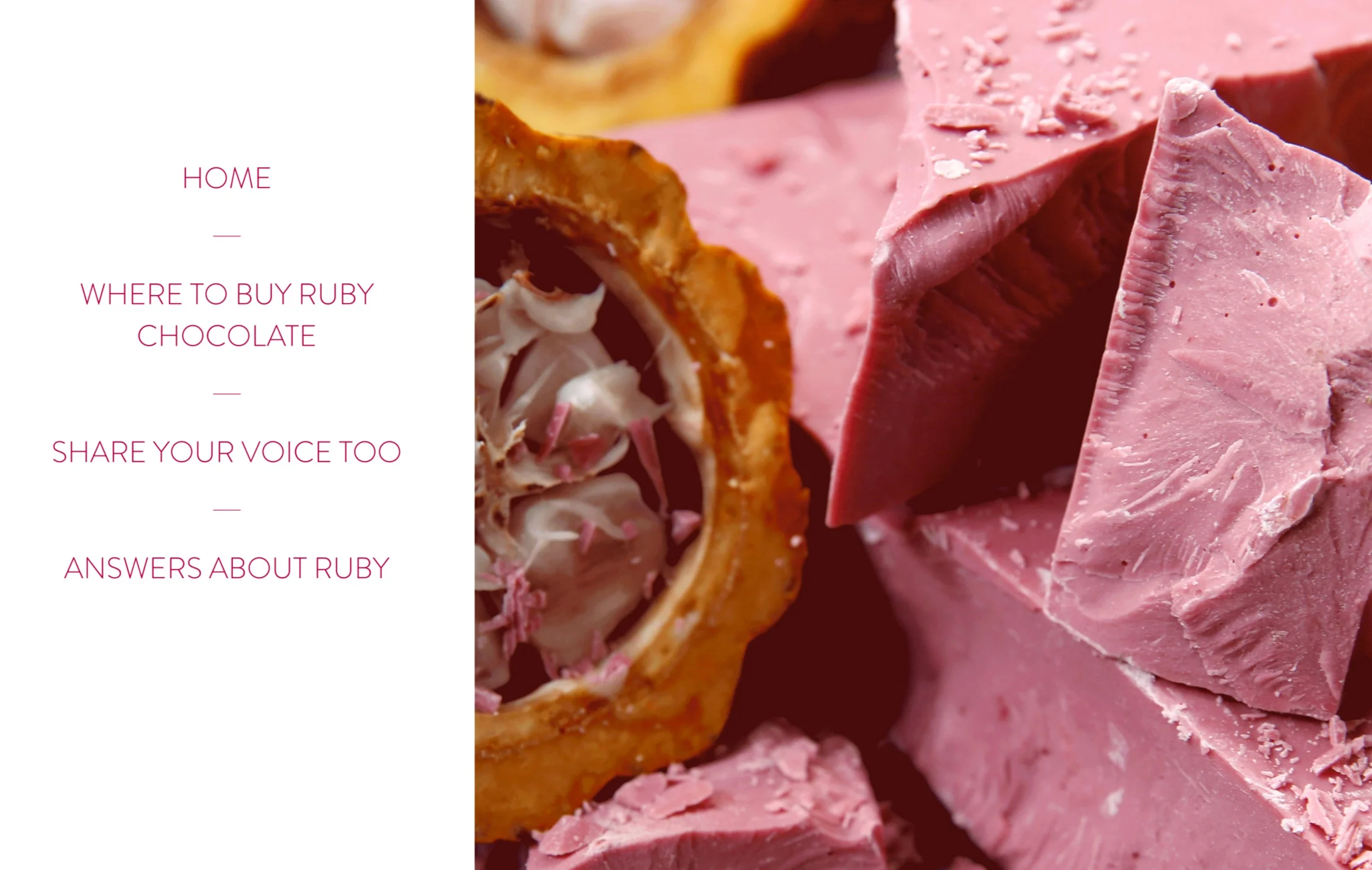 On rubychocolate.com, visitors can share their ruby excitement and get inspired by brands and artisans showcasing their ruby applications. People can also find an overview of all the ‘rubylicious’ moments that are being shared across social media platforms. Furthermore, visitors can explore a digital map of the world to find out where they can purchase Ruby chocolate.